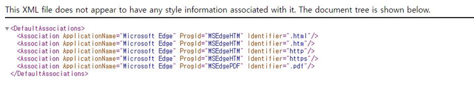 <Association ApplicationName="Microsoft Edge" ProgId="MSEdgeHTM" Identifier=".htm"/>
